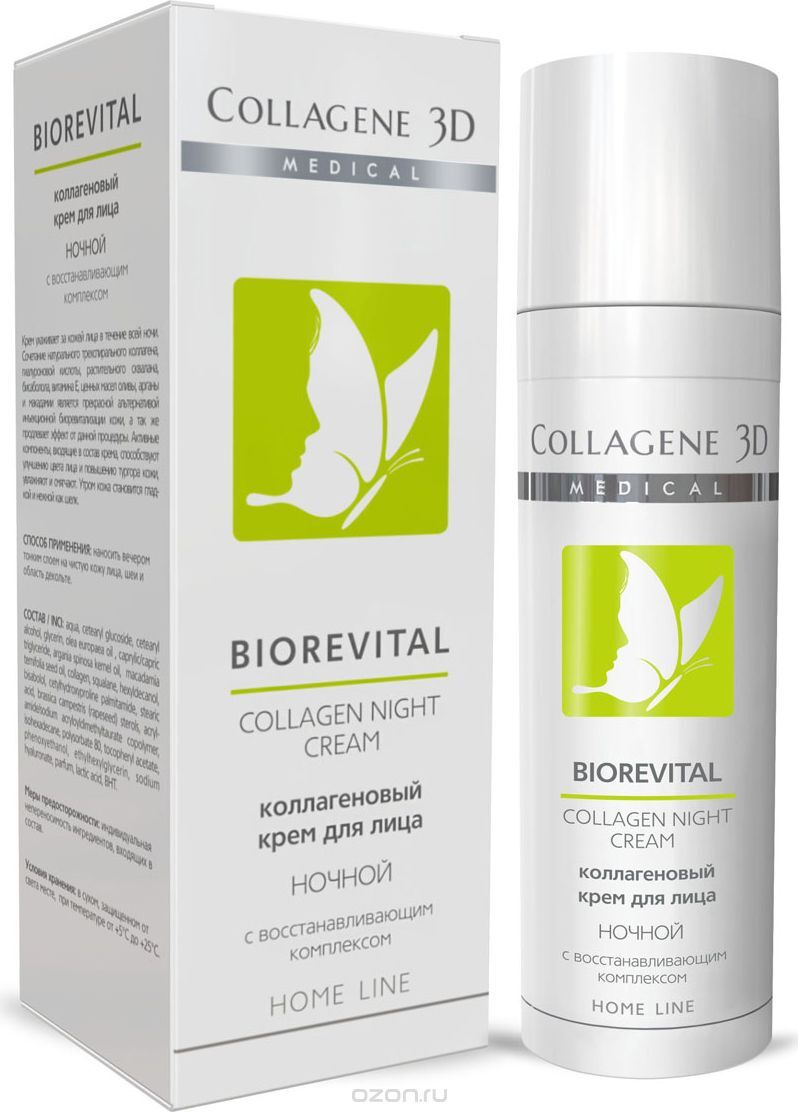 Активные ингредиенты: нативный трехспиральный коллаген, низкомолекулярная гиалуроновая кислота, комплекс АНА-кислот, масло оливы и персиковых косточек, аллантоин, витамины А, Е, С, никотинамид (вит РР), Д-пантенол.