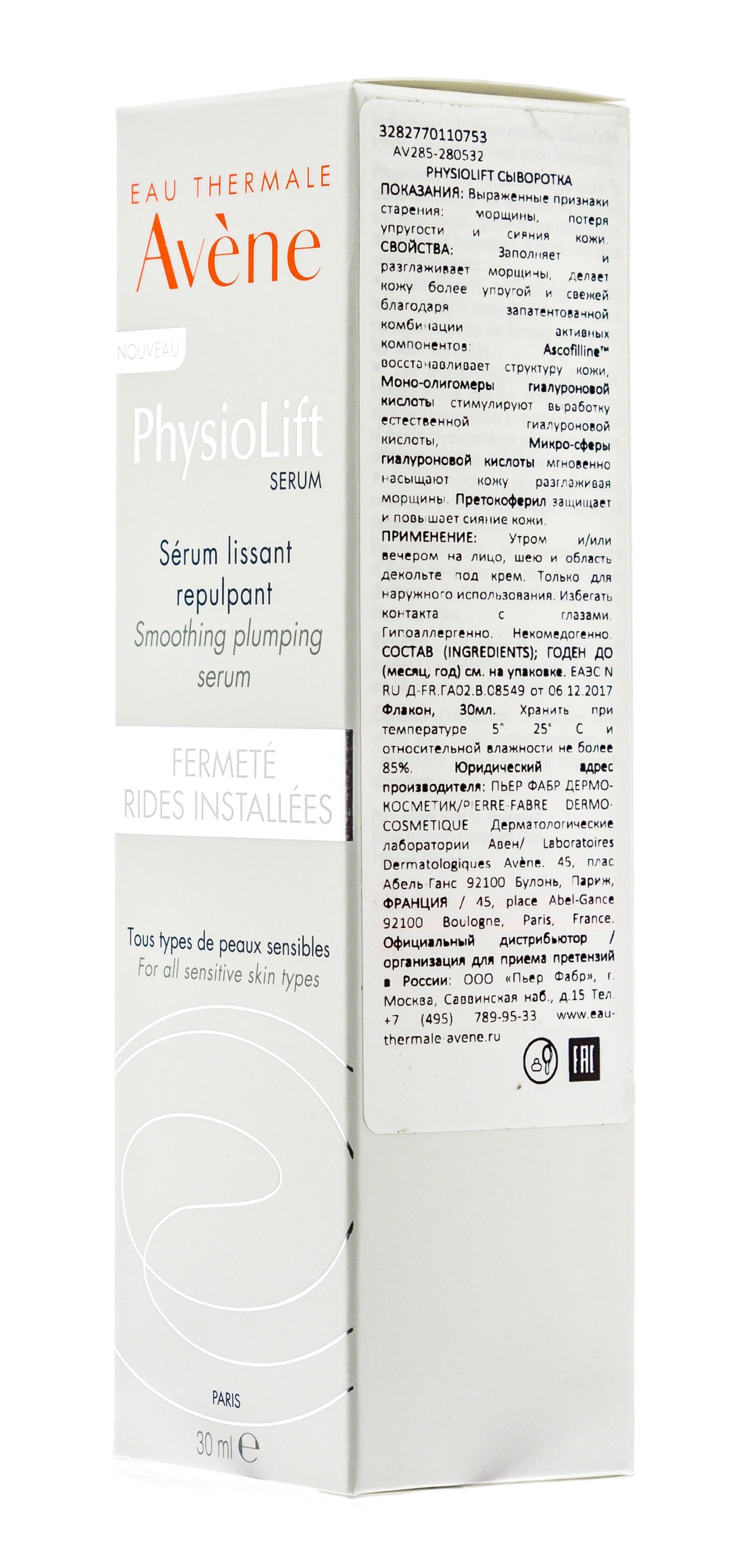 Инновационная сыворотка эффективно устраняет признаки старения, не повреждая при этом чувствительную кожу. Уникальное сочетание компонентов средства оказывает многогранный эффект на эпидермис: насыщает влагой, заполняет и разглаживает морщины, обеспечивает антиоксидантную защиту и придает здоровое сияние. Сыворотка Физиолифт заметно улучшает текстуру кожи лица уже после первого применения, а при регулярном использовании исчезают даже глубокие морщины и подтягивается контур лица. Кожа гладкая, заметно разглаженная, освежена и увлажненная. Наносите утром и/или вечером перед ежедневным уходом за кожей. Комплекс микросфер и моноолигомеров гиалуроновой кислоты увлажняет и укрепляет кожу моментально и на длительное время;