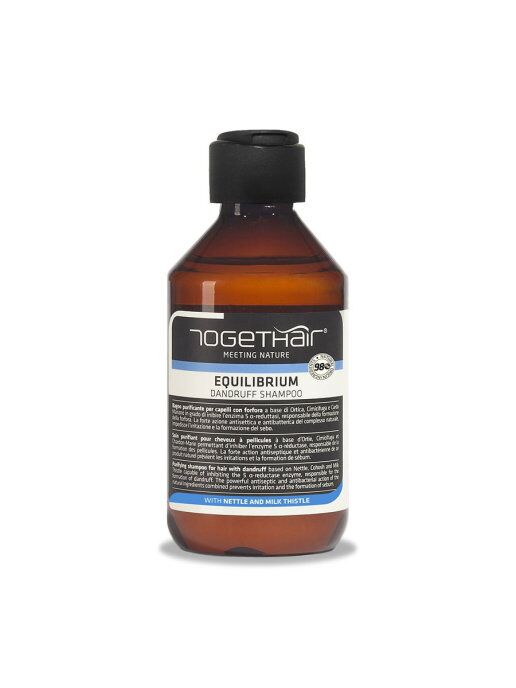 Шампуни Togethair не содержат SLES (лауретсульфат натрия), SLS (лаурилсульфат натрия) и другие сульфатные ПАВ, парабены. 98% ингредиентов растительного происхождения. Очищающий шампунь для волос с перхотью на основе крапивы, клопогона и пятнистой расторопши. Этот комплекс на основе растительных экстрактов способен противодействовать появлению перхоти благодаря своему дезинфицирующему и очищающему действию. TOGETHAIR – профессиональная фитокосметика для волос.